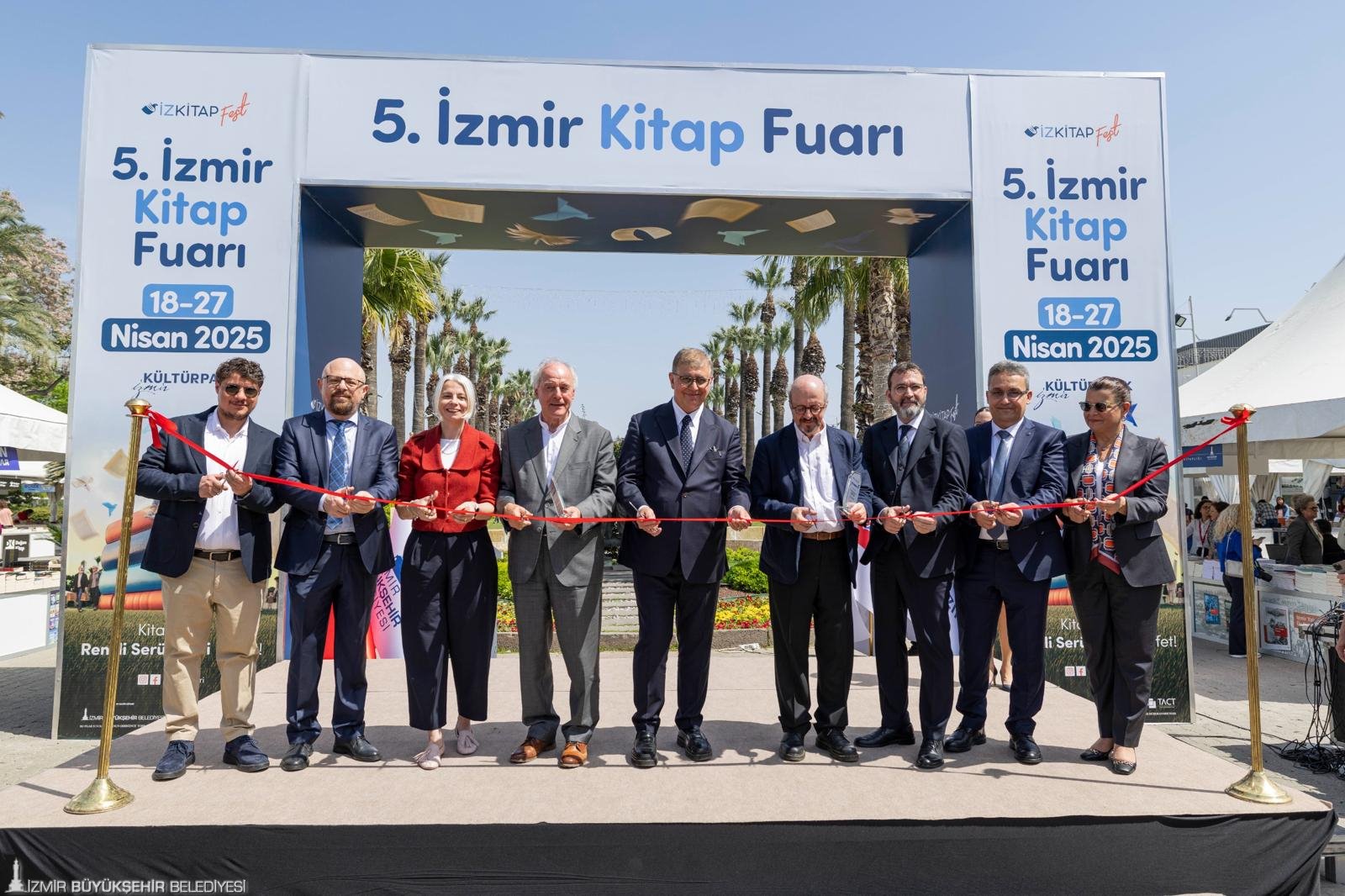 İzmir Büyükşehir Belediyesi’nin ev sahipliğinde İZFAŞ ve TACT Fuarcılık iş birliği ile düzenlenen 5. İzmir Kitap Fuarı, Kültürpark’ta kapılarını açtı. 18-27 Nisan 2025 tarihleri arasında festival gibi bir organizasyonla kitapseverleri; katılımcı yayınevleri, sahaflar, müzayedeler, konuk yazarlar, sergiler, söyleşiler ve imza günleriyle buluşturacak fuarın açılışı İzmir Büyükşehir Belediye Başkanı Dr. Cemil Tugay’ın katılımıyla yapıldı. Törende onur konukları yazar, karikatürist ve belgesel film yönetmeni Behiç Ak ile felsefeci ve yazar Wilhelm Schmid, ilçe belediye başkanları, İzmir Büyükşehir Belediyesi bürokratları ve yurttaşlar da yer aldı. Başkan Tugay tören öncesi Pakistan Pavyonu’nda onur konukları Behiç Ak ve Wilhelm Schmid ile bir araya gelerek sohbet etti.