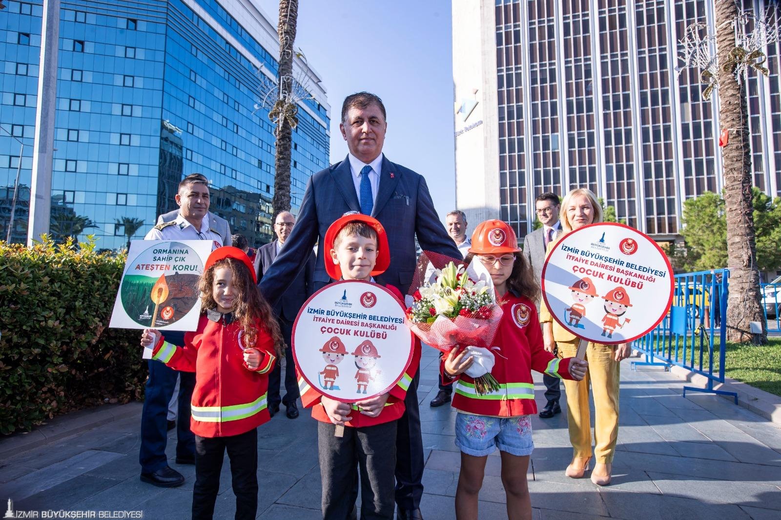 “Yangın çıktıktan sonra en hızlı şekilde söndürmek ve aynı zamanda sizlerin can güvenliğini sağlamak için gereğini yapmak zorundayız. Bu bilinçle çalışıyoruz. İzmir İtfaiyesi, İzmir’in gururu olan kurumlardan birisi. Bundan sonra da gururu olmaya devam edecek. Ben de İzmir Büyükşehir Belediye Başkanı olarak her yerde sizlere duyduğum gururu ifade etmek istiyorum. Gösterdiğiniz emek, çaba, fedakarlıklar, 7 gün 24 saat sürekli göreve hazır olduğunuz, bu kutsal görevi yerine getirdiğiniz için her birinizi yürekten kutluyorum. Hepinize ayrı ayrı teşekkür ediyorum” diye konuştu.