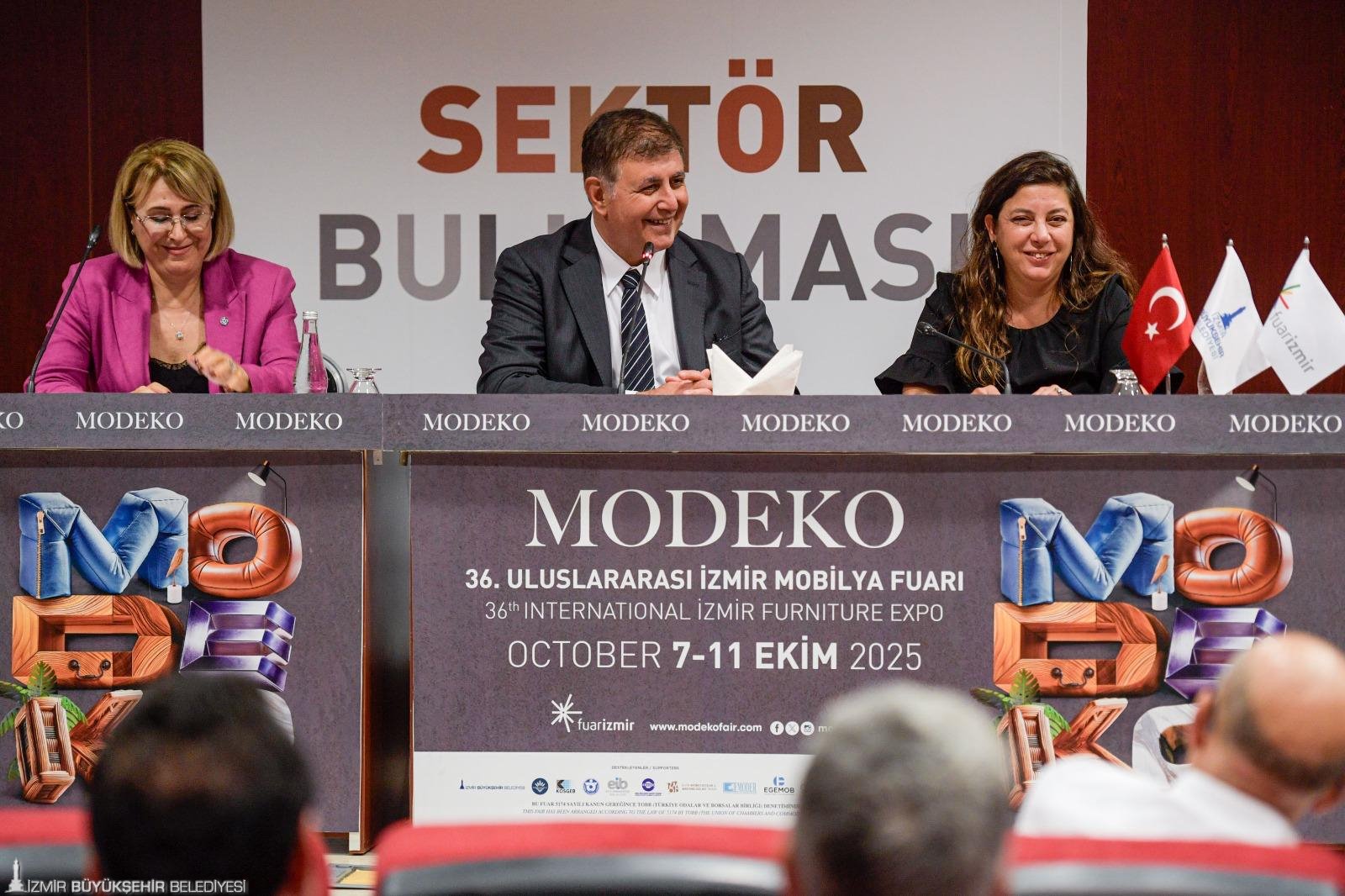İzmir Büyükşehir Belediye Başkanı Dr. Cemil Tugay, Fuar İzmir’de mobilya sektörünün temsilcileriyle bir araya geldi. İzmir Büyükşehir Belediyesi ev sahipliğinde İZFAŞ ve EFOR Fuarcılık tarafından 36. kez 7-11 Ekim 2025 tarihlerinde düzenlenecek MODEKO-Uluslararası İzmir Mobilya Fuarı öncesinde sektör temsilcileri ile buluşan Başkan Dr. Cemil Tugay, istekleri ve ihtiyaçları dinledi. Tugay, geçen yıl Ege Bölgesi’nden yapılan 224 milyon dolarlık mobilya ihracatını, fuara destek vererek artıracaklarını belirtti.