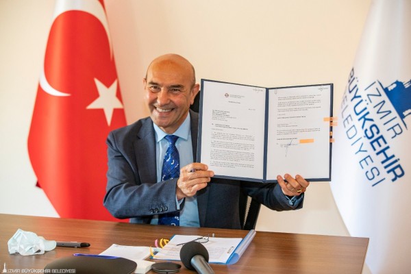 İmza töreni, İzmir Büyükşehir Belediye Başkanı Tunç Soyer, İzmir Büyükşehir Belediyesi Genel Sekreteri Dr. Buğra Gökçe, İzmir Büyükşehir Belediyesi Genel Sekreter Yardımcısı Barış Karcı, İzmir Büyükşehir Belediyesi Satınalma Dairesi Başkanı Övünç Özgen, Başkan Danışmanı Onur Eryüce ve AIIB Başkan Yardımcısı Konstantin Limitovsky, Genel Müdür Supee Teravaninthorn, AIIB Teknik Departman Yöneticisi Gregory Liu, AIIB Kıdemli Yatırım Operasyonları uzmanları Edwin Yuen ile Francisco -Jose Fortuny’nin video-konferansa katılımları ile gerçekleştirildi. Hazine garantisiz 125 milyon Euro tutarındaki yetkilendirme anlaşması, İzmir Büyükşehir Belediye Başkanı Tunç Soyer, AIIB Başkan Yardımcısı Konstantin Limitovsky ve Genel Müdür Supee Teravaninthorn tarafından eş zamanlı olarak imzalandı.
