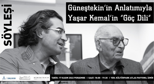 İzmir Büyükşehir Belediyesi, Yaşar Kemal Vakfı ve Güneştekin Vakfı’nın katkılarıyla “Güneştekin’in Anlatımıyla Yaşar Kemal’in göç dili” söyleşisine ev sahipliği yapıyor. Ahmet Güneştekin’in Kültürpark Atlas Pavyonu’nda sanatseverlerle buluşan “Gâvur Mahallesi” sergisi kapsamındaki söyleşi, 17 Kasım’da 18.00’de başlayacak. Söyleşi “göç” temasına odaklanan sergiyle iç içe yapılacak.