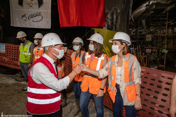 İzmir Büyükşehir Belediye Başkanı Tunç Soyer, Fahrettin Altay-Narlıdere metro hattının yapımında çalışan personelin de Ramazan Bayramı’nı kutladı. Ziyaret sırasında tünele inerek çalışmaları da inceleyen Başkan Soyer’e İzmir Büyükşehir Belediye Başkan Vekili Mustafa Özuslu, İzmir Büyükşehir Belediyesi Genel Sekreteri Dr. Buğra Gökçe, İzmir Büyükşehir Belediyesi Genel Sekreter Yardımcısı Eser Atak ile İzmir Büyükşehir Belediyesi Banliyö ve Raylı Sistem Yatırımları Dairesi Başkanı Mehmet Ergenekon eşlik etti. İşçilerle bayramlaşan Soyer, “Bu iş bittikten sonra çocuklarınıza anlatacağınız bir miras bırakıyorsunuz. Hepinizle gurur duyuyoruz” diye konuştu.