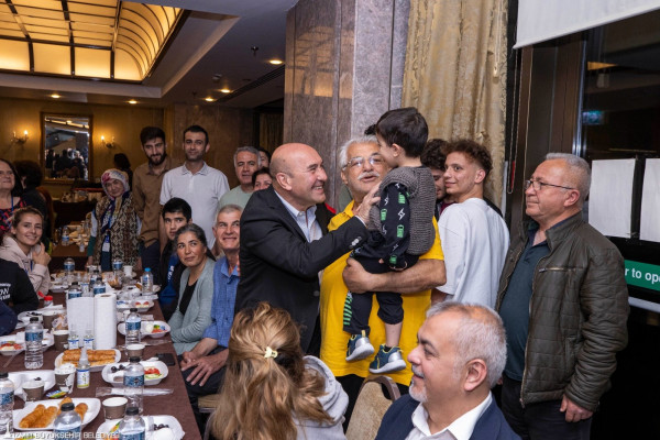 İzmir Büyükşehir Belediyesi, 11 şehirde yıkıma neden olan 6 Şubat depremlerinin ardından İzmir’e gelen depremzedeleri misafir etmeye devam ediyor. Depremzedelerin geçici barınma sorununu çözmek için İzmir Büyükşehir Belediyesi’nin hissedarı olduğu eskiden Hilton Oteli’nin kullandığı binanın da kapıları büyük ortak Ata Holding’in de onayıyla depremzedelere açıldı. İzmir Büyükşehir Belediye Başkanı Tunç Soyer, burada misafir edilen depremzedelerle sahurda bir araya geldi. Başkan Tunç Soyer’e İzmir Büyükşehir Belediyesi Genel Sekreteri Barış Karcı, İZELMAN A.Ş. Genel Müdürü Burak Alp Ersen ve bürokratlar da eşlik etti. Eski Hilton Oteli’nde 75 odada 163 kişi konaklıyor.
