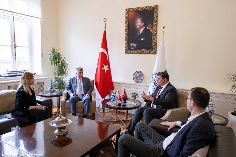 Yunanistan’ın İzmir Başkonsolosu Alexandros Konstas, İzmir Büyükşehir Belediye Başkanı Dr. Cemil Tugay’ı makamında ziyaret etti. Başkan Dr. Cemil Tugay gelecek dönemde Türk-Yunan ilişkilerinin iyileşmesi, yakın dostlukların oluşması için çalışacaklarını söyledi. Tugay, “Bugüne kadar aslında ilişkilerimizin, dostluklarımızın, ortak projelerimizin daha ileri düzeyde olması gerekiyordu. Çok daha gelişmiş bir dostluğumuz olmalıydı. Burada aşmamız, yıkmamız gereken bir duvar var. Bu engeli olabildiğince küçültmek istiyorum. Kültürel ve coğrafi olarak çok yakınız. Yunanistan ile Ege Denizi’nin temizliği, ekosistemin korunması için birlikte çalışmamız gerekiyor” diye konuştu.